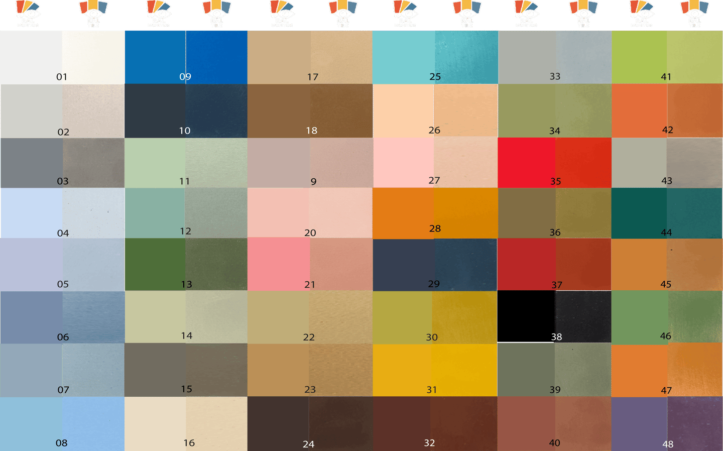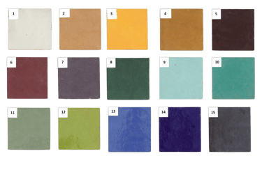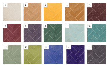 Os facilitamos la paleta de color de nuestras baldosas hidráulicas artesanales con tratamiento protector incorporado, compuesta por 12 columnas.