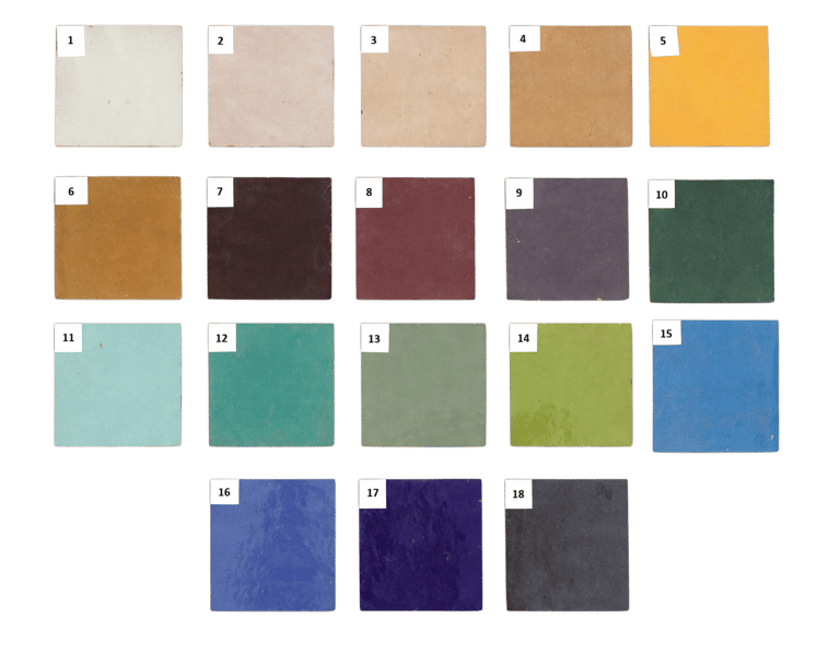 Os facilitamos la paleta de color de nuestras baldosas hidráulicas artesanales, compuesta por 12 columnas.